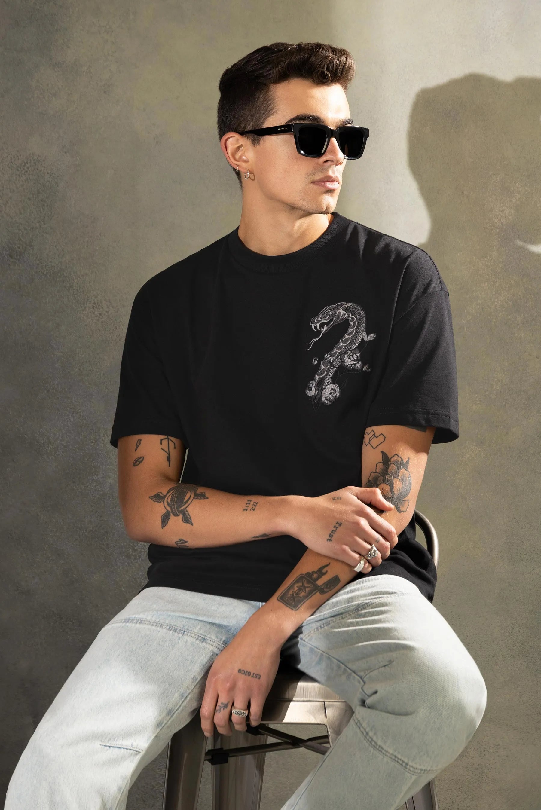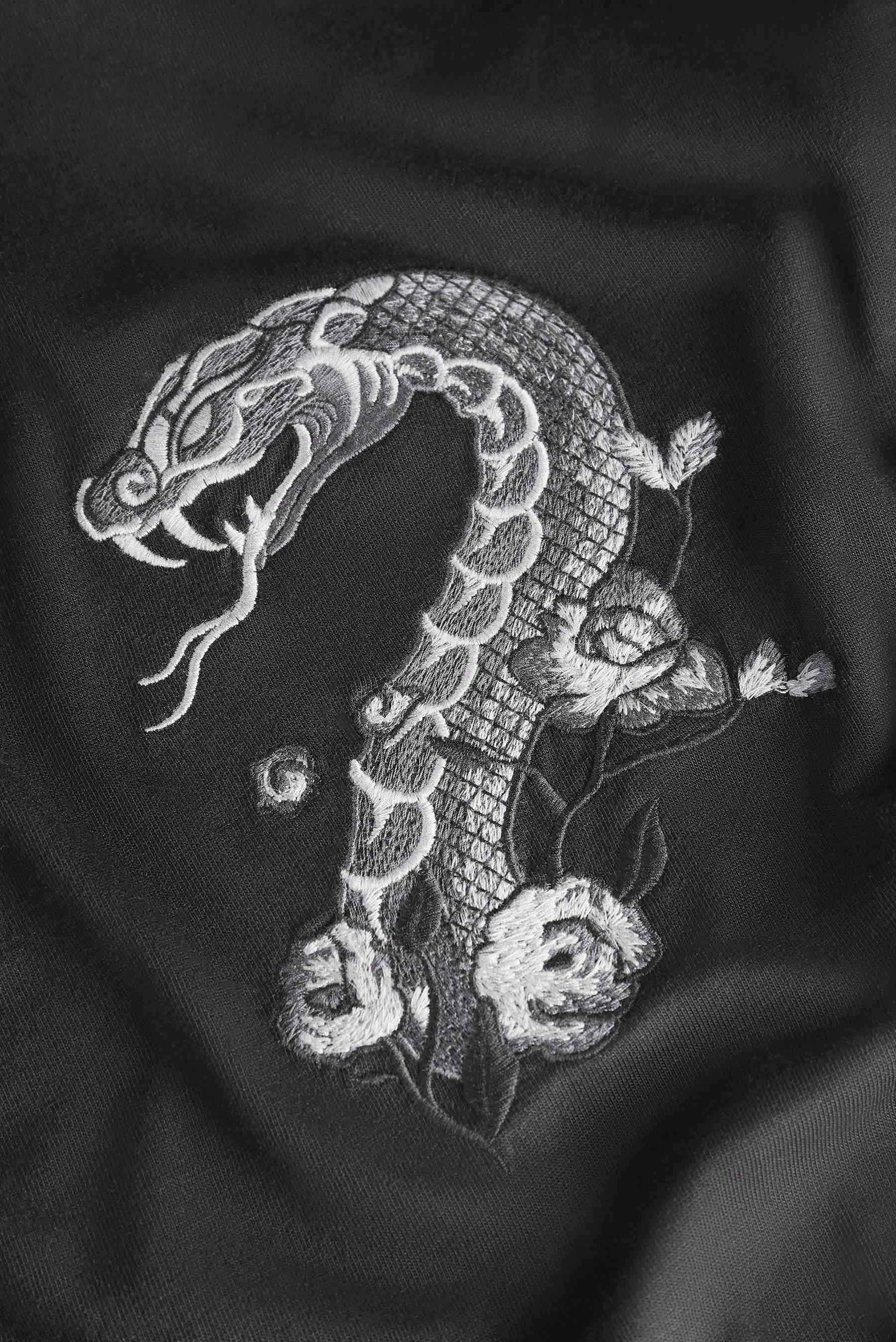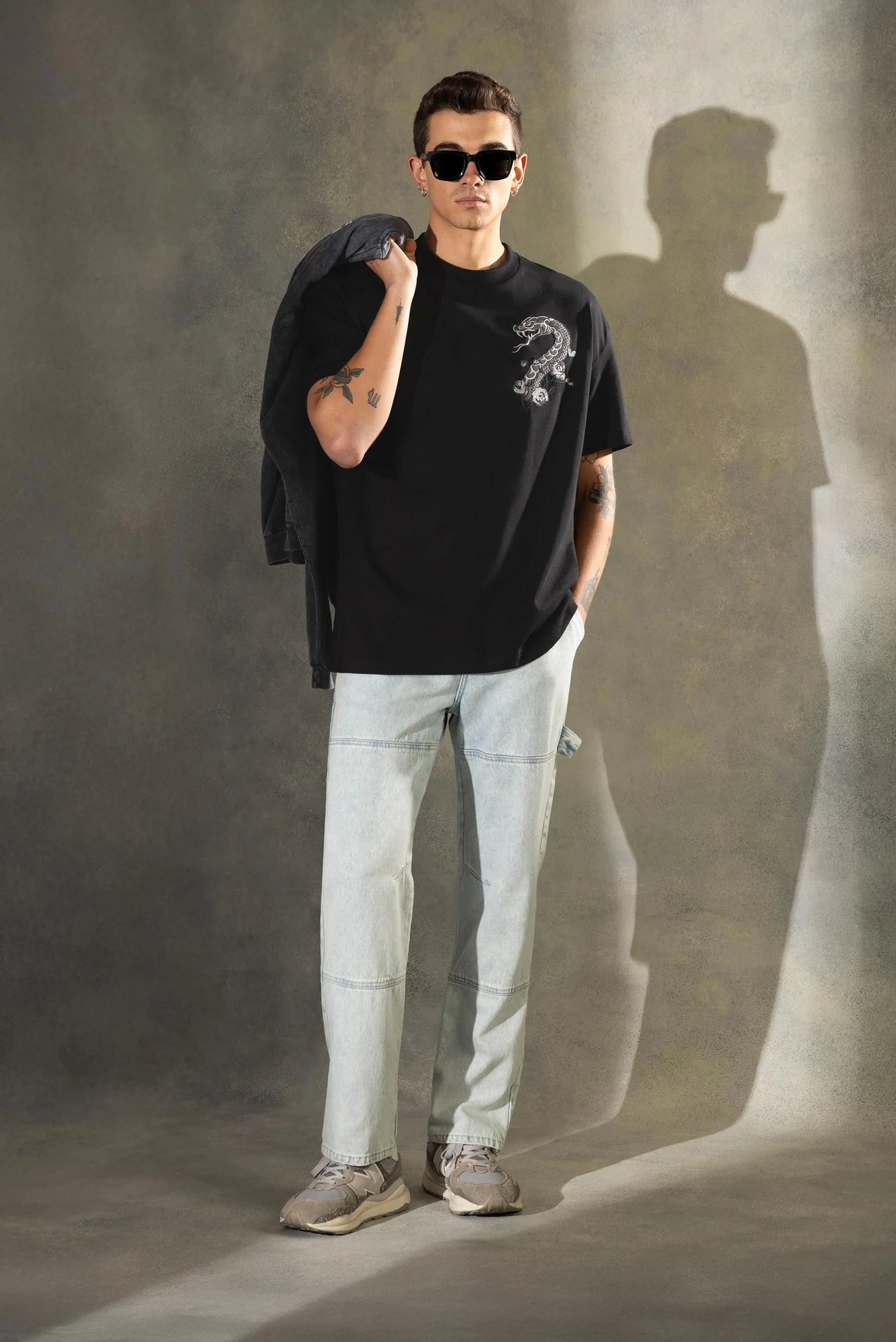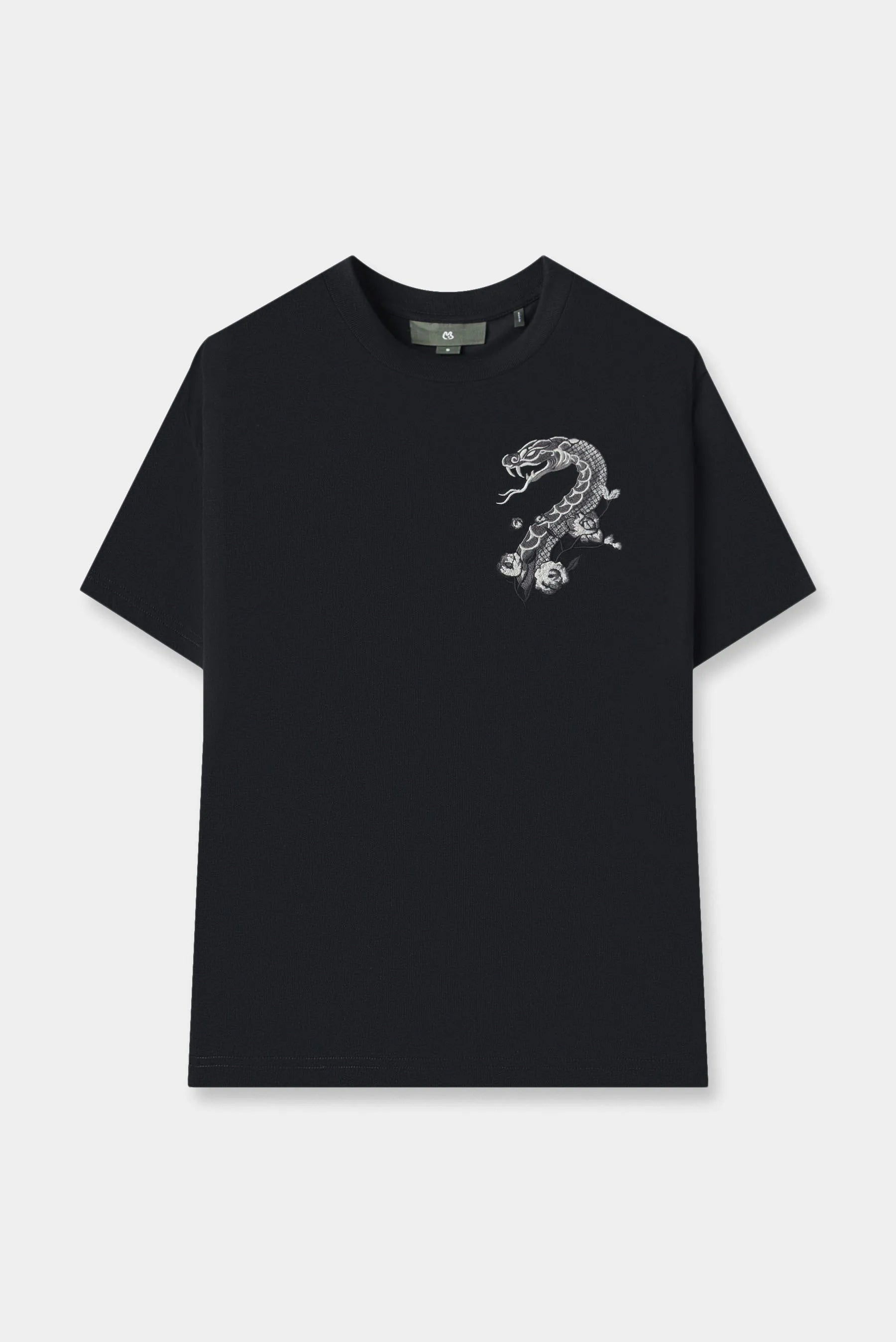 Camiseta Oversize confeccionada en un Jersey Premium de gramaje medio de 200gr de peso. Tiene una ilustración de un dragón en frente utilizando la técnica de bordado, lo cual le da relieve a la imagen.